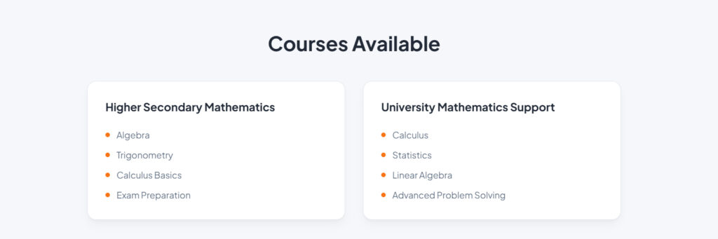 Our courses are designed for higher secondary students (ages 15-18) and university students who need support in